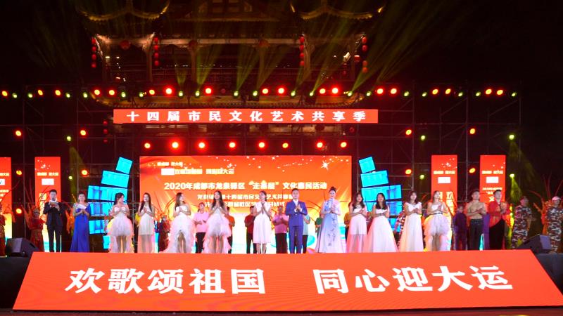 9月22日晚,“欢歌颂祖国·同心迎大运”,2020年成都市龙泉驿区“走基层”文化惠民活动暨龙泉驿区第十四届市民文化艺术共享季龙泉驿区首届社区文化艺术月开幕式在洛带古镇五凤楼广场精彩上演。