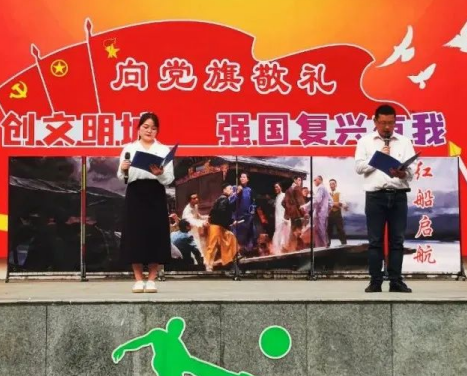 嘉兴南湖畔,从一艘小小红船出发,开启了一个永载史册的新篇章。少先队员与团员老师们用《爷爷带我看红船》的情景剧表演给全校师生讲述了党的光辉历程并号召全体学生在中国共产党指引和激励下,努力实现中华民族伟大复兴,在时代的潮流中,将个人和祖国梦想的融为一体。