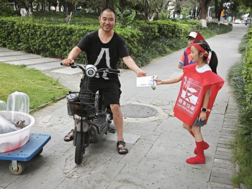 当天,在洗面桥社区河道边,小朋友们身着鲜艳的志愿者服装和垃圾分类的服装,分成小组,向来往群众分发垃圾袋和宣传手册。垃圾袋的发放意在提醒大家妥善处理垃圾,避免污染河道水源。宣传手册则详细介绍了河道保护的重要性以及如何参与到保护行动中来。