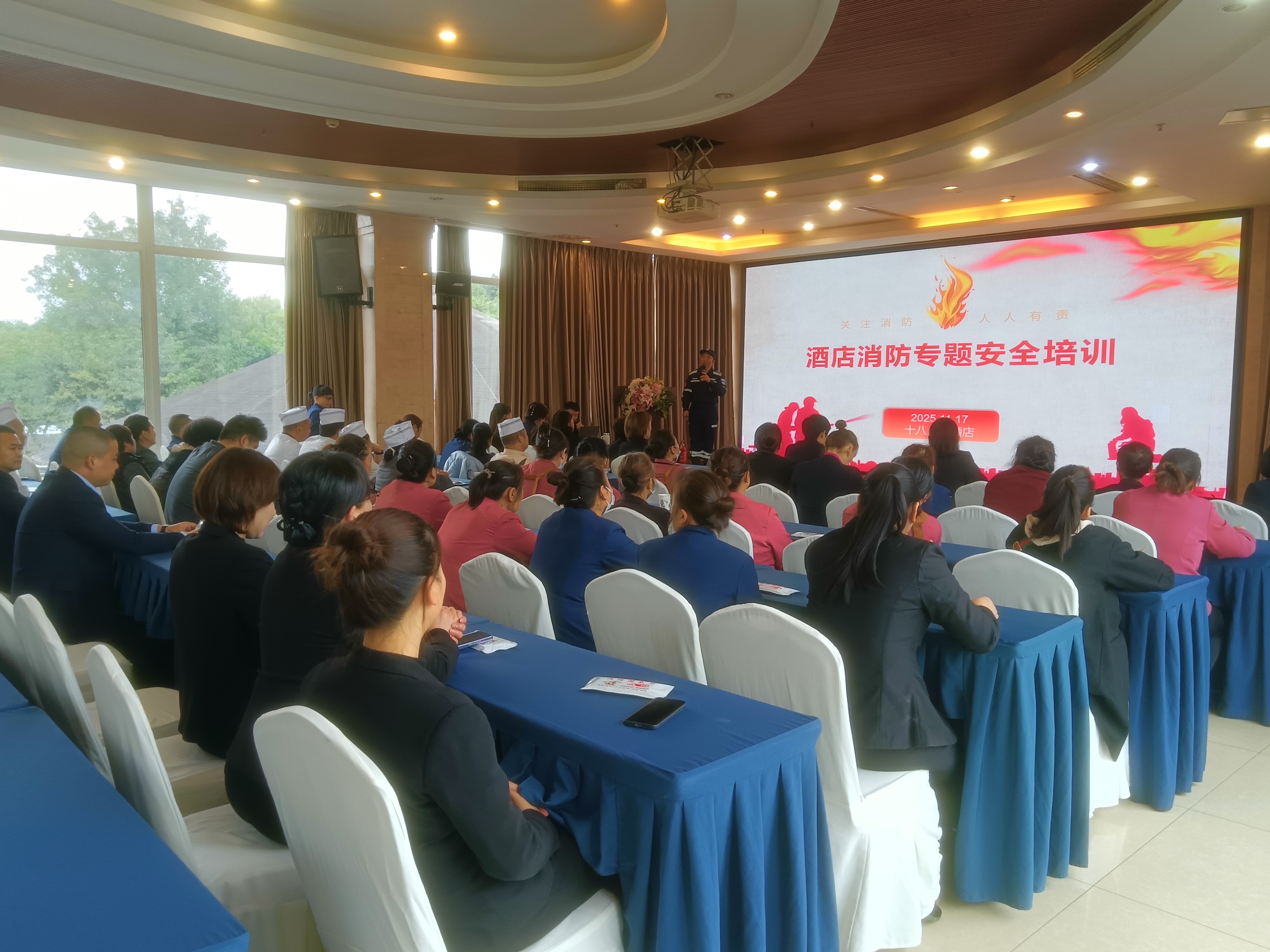 为深入践行“全民消防,生命至上”理念,切实强化社区居民及酒店从业人员的安全用火用电意识与应急处置能力,11月17日,迎江社区联合十八步岛酒店举办专题消防安全知识培训活动。活动以“理论宣讲+情景演练”相结合的形式,覆盖社区居民、酒店员工等八十余人,通过精准化教学与实战化演练,筑牢辖区酒店场景消防安全“防护网”。